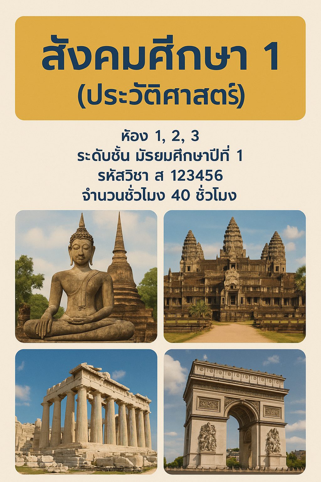 สังคมศึกษา 1 (ประวัติศาสตร์) ห้อง 1, 2, 3 ระดับชั้น มัธยมศึกษาปีที่ 1
